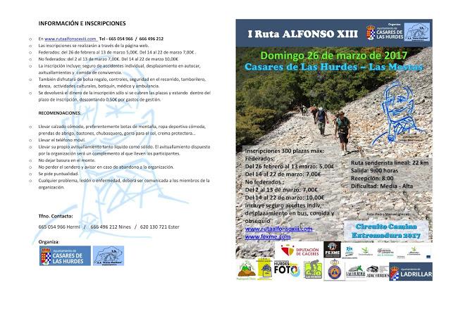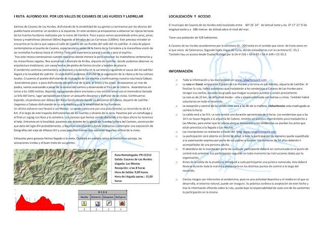 Ruta Senderismo "Alfonso XIII". Domingo, 26 de marzo de 2017. El recorrido, de 22 km. transcurre entre Casares de las Hurdes a la...